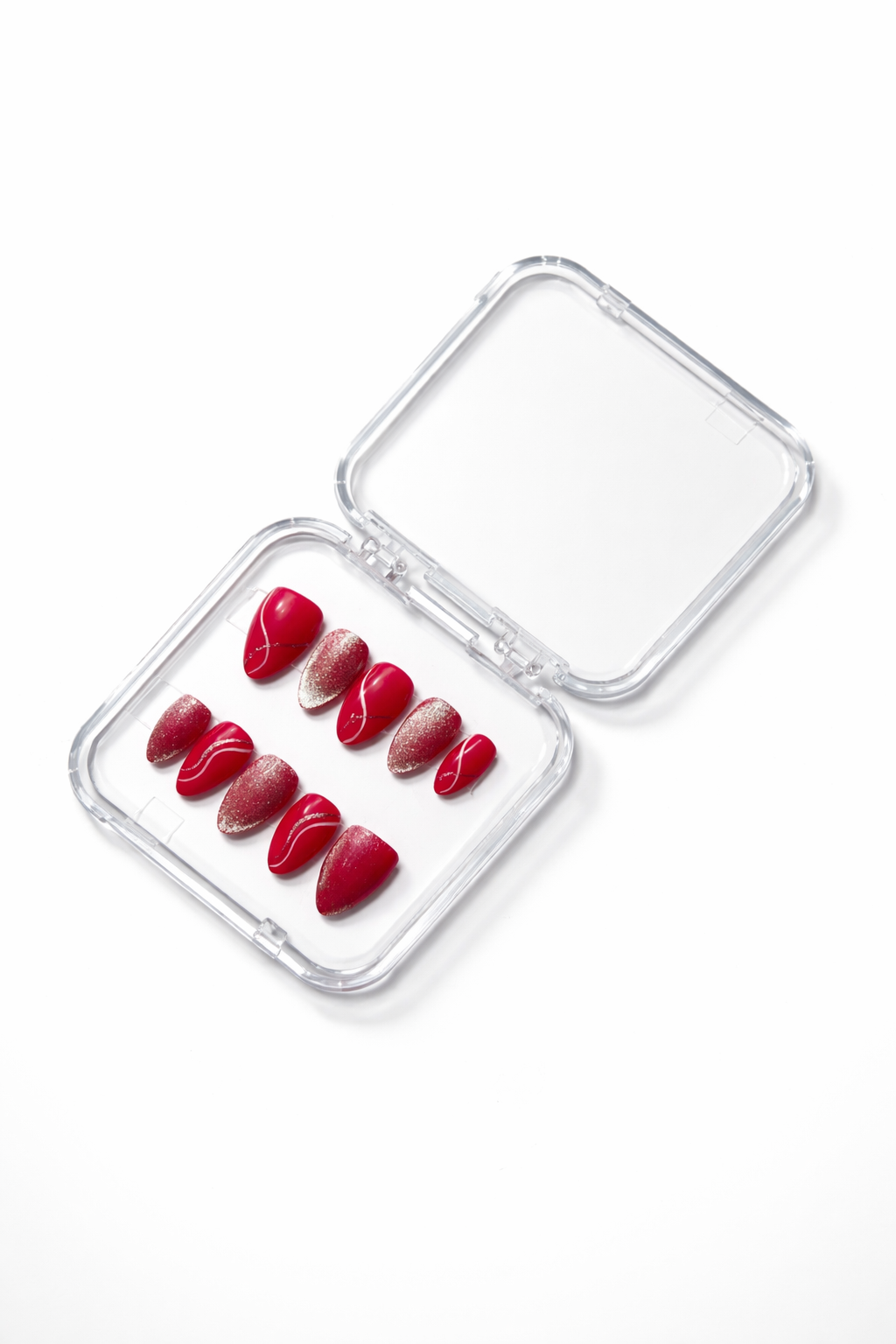 Command attention with Crimson Royale. This striking press-on nail set features rich ruby-red tones paired...
