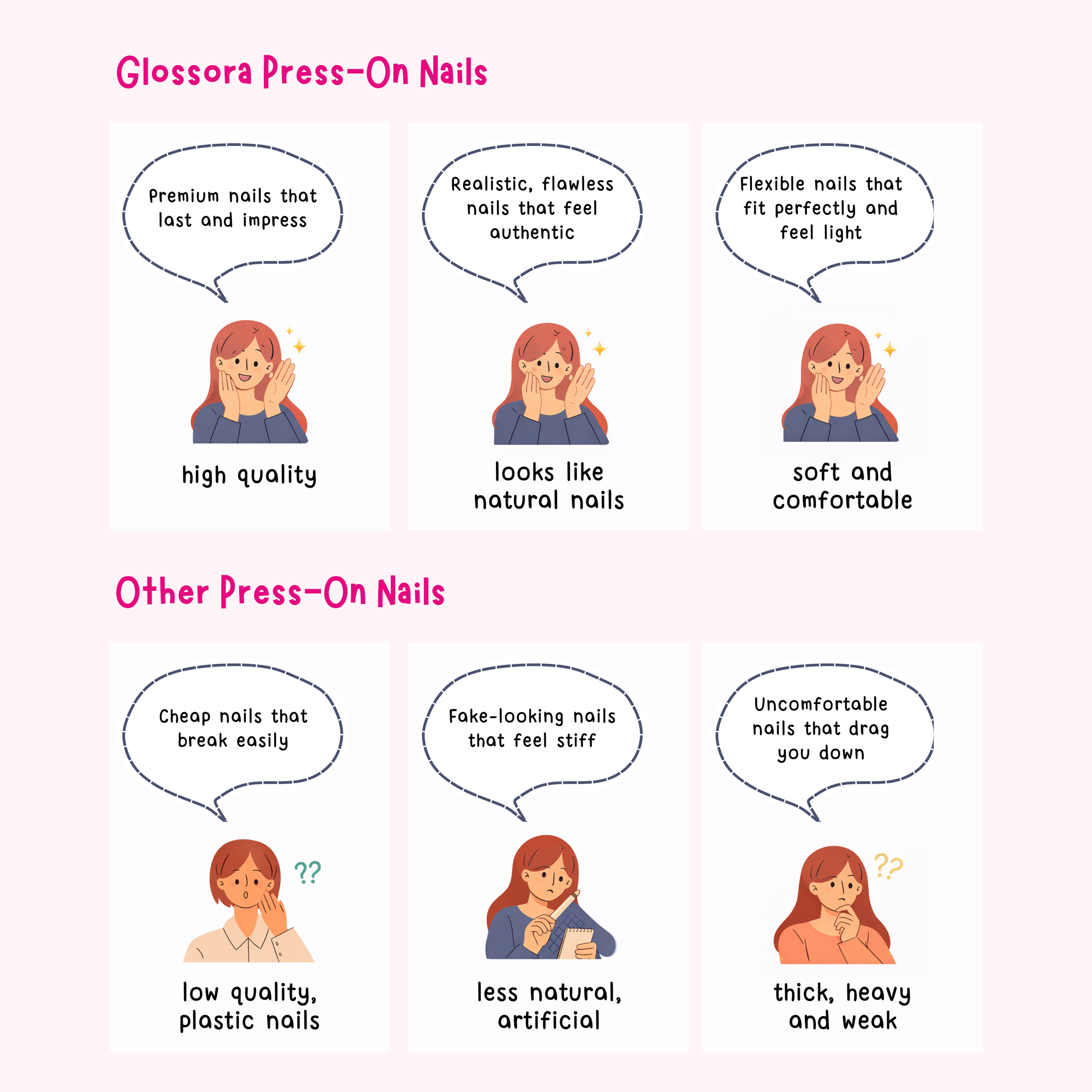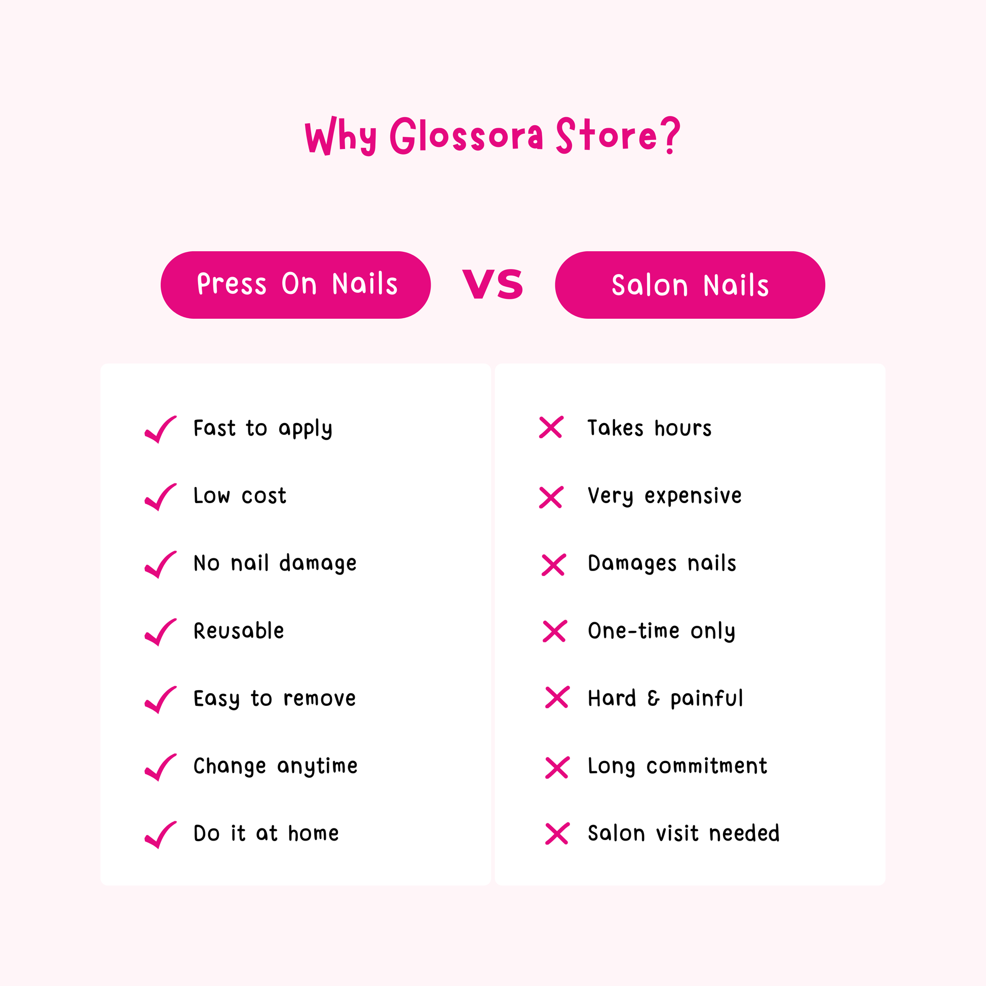 GLOSSORA nails are long lasting and are suitable for all your daily chores.