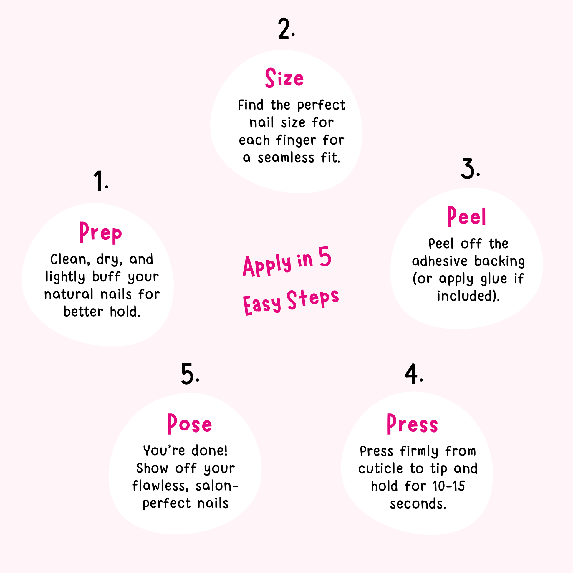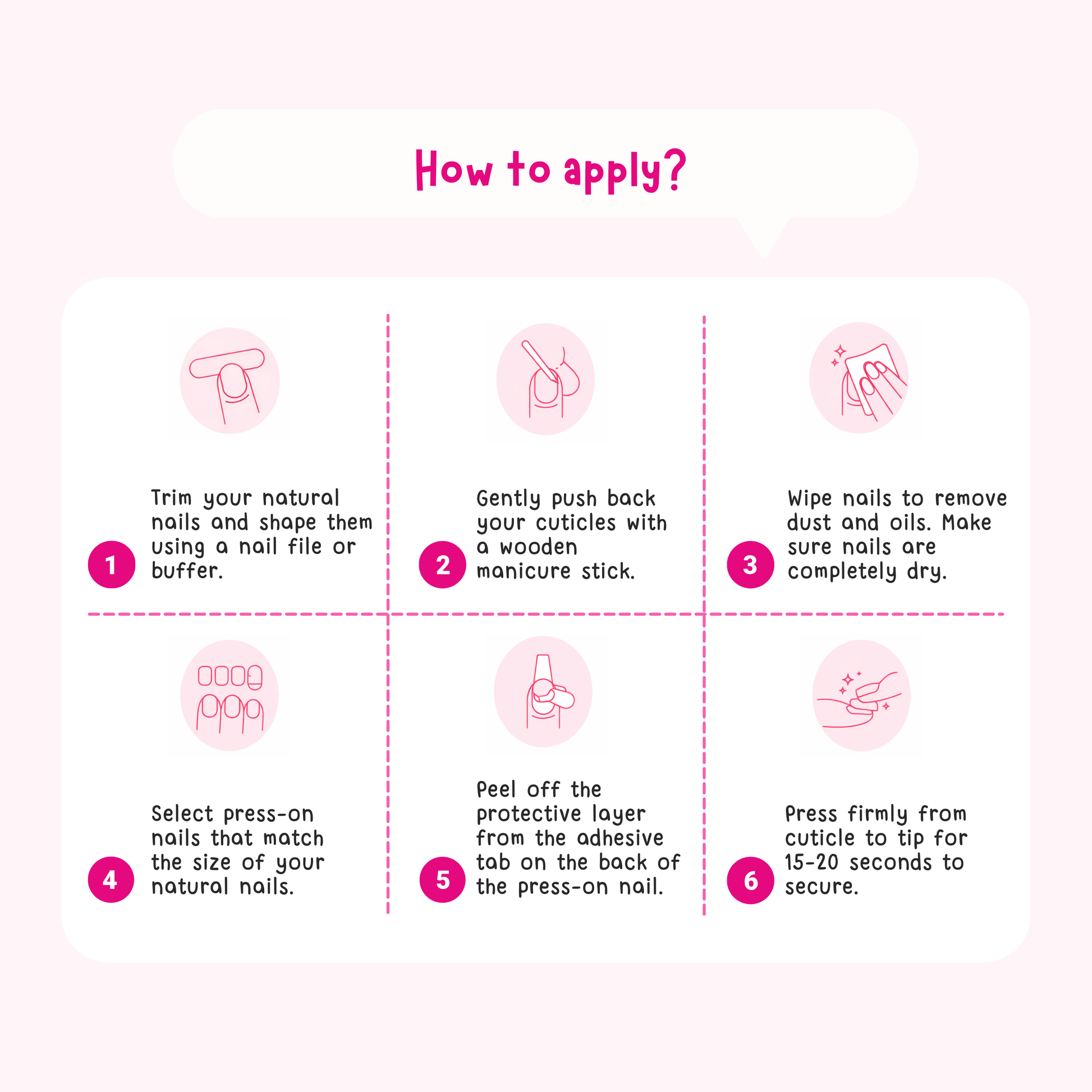 To keep your GLOSSORA press on nails looking beautiful and lasting longer, start by ensuring your natural nails are clean, dry, and free from any oils or lotions before application. For the best results, use the adhesive or glue provided and press each nail firmly for at least 30 seconds. Avoid exposing your nails to water for the first few hours after applying to help them stay secure. Treat your nails gently by not using them as tools or exposing them to harsh chemicals like cleaning products, as these can weaken the adhesive and damage the design. When it’s time to remove, soak your nails in warm, soapy water or use an acetone-based remover to gently lift them without harming your natural nails. Lastly, store any unused nails in a cool, dry place away from sunlight to maintain their color and quality. With these simple steps, your GLOSSORA nails will stay flawless and ready to shine for any occasion.